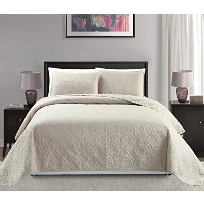 Mk Collection 3pc King/California King Over Size Diamond Bedspread Bed Cover Embossed Solid Beige New
