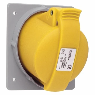 MK Commando K9767 16A 2P+E 100 130V Angled Socket Outlet (IP44) Yellow