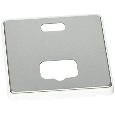 MK Dimensions 1 Gang 13A Connection Unit and Neon Satin Steel Finish Frontplate with a White Trim
