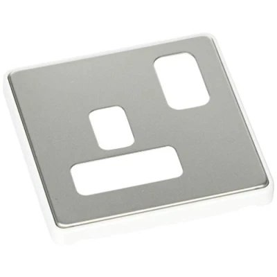 MK Dimensions 1 Gang 13A DP Dual Earth Switch Socket Satin Steel Finish Frontplate with a White Trim
