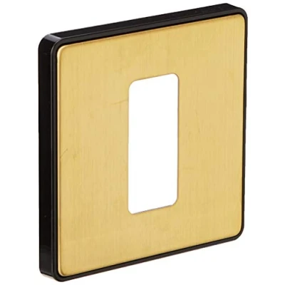 MK Dimensions 1 Gang 20A Large Rocker Switch Satin Brass Finish Frontplate with a Black Trim