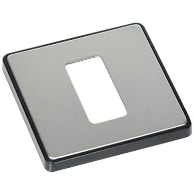 MK Dimensions 1 Gang 20A Large Rocker Switch Satin Steel Finish Frontplate with a Black Trim