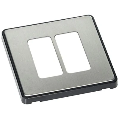 MK DIMENSIONS 2G 20A LARGE ROCKER SWITCH FRONTPLATE BRUSHED STAINLESS STEEL WITH BLACK TRIM