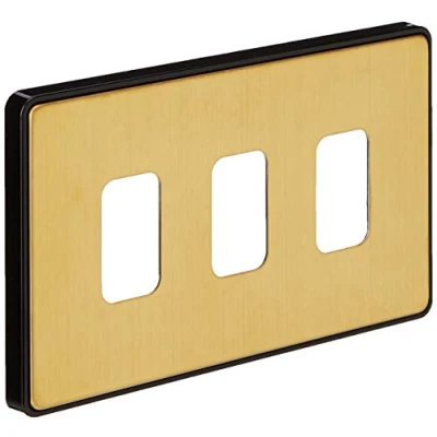 MK Dimensions 3 Module Grid Satin Brass Finish Frontplate with a Black Trim
