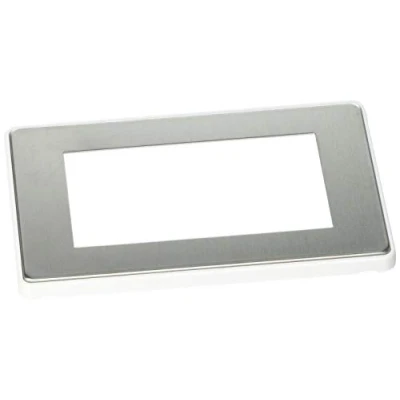 MK Dimensions 4 Module Euro Frame Brushed Stainless Steel Finish Frontplate with a White Trim