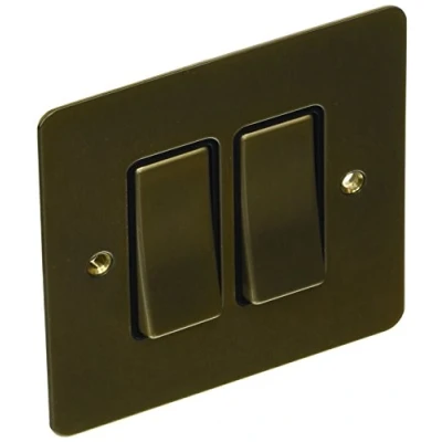 Double Gang two-way plateswitch Stylish slim line design with a frontplate profile of only 1.5mm Satin Gold finish Matching large metal rocker switches Black inserts, Manufacturer: MK