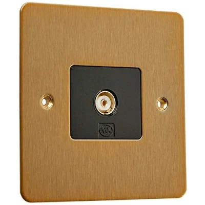 TV/FM single non-isolated module Stylish slim line design with a frontplate profile of only 1.5mm Satin Gold finish Matching flathead screws used throughout Black inserts, Manufacturer: MK