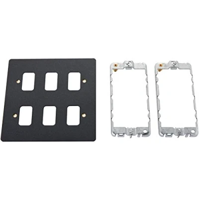 6 module frontplate Stylish slim line design with a frontplate profile of only 1.5mm Lustrous Black finish Matching flat head screws used Supplied with mounting frame, Manufacturer: MK