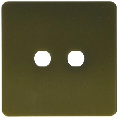 Two module toggle switch frontplate Supplied with grids Satin Gold finish Matching flathead screws used throughout Stylish slim line design with a frontplate profile of only 1.5mm, Manufacturer: MK