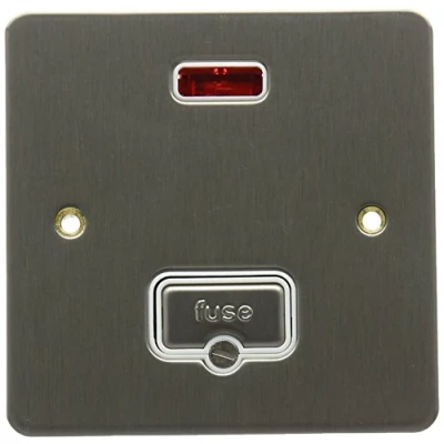13A fused connection units with neon indicator Neon indicator is located centrally and uppermost on the face plate Lacquered Brushed Steel finish Designed for the connection of refrigeratiors, water heaters, central heating boilers and other fixed appliances Stylish slim line design with a frontplate profile of only 1.5mm, Manufacturer: MK