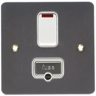 13A fused and switched connection units with neon indicator included in the rocker switch Designed for the connection of refrigeratiors, water heaters, central heating boilers and other fixed appliances Brushed Chrome finish White Inserts Stylish slim line design with a frontplate profile of only 1.5mm, Manufacturer: MK