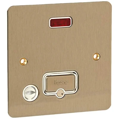 13A fused connection units with neon indicator and flex outlet Designed for the connection of refrigeratiors, water heaters, central heating boilers and other fixed appliances Lacquered Brushed Steel finish White Inserts Stylish slim line design with a frontplate profile of only 1.5mm, Manufacturer: MK