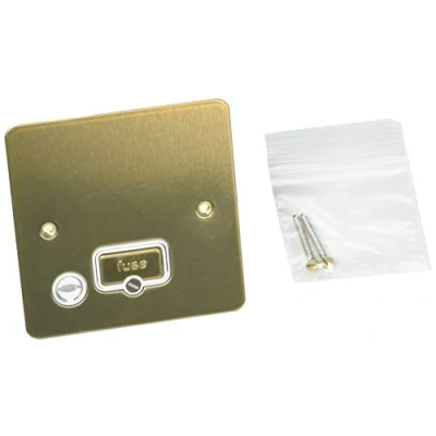 13A fused connection unit with flex outlet Designed for the connection of refrigeratiors, water heaters, central heating boilers and other fixed appliances Satin Gold finish White Inserts Stylish slim line design with a frontplate profile of only 1.5mm, Manufacturer: MK