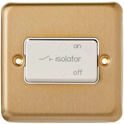 Three pole Fan Isolator high current switch Particularly useful in bathrooms, toilets, storerooms and basements where there is little or no natural light Satin Gold finish Pre-treated heat-cure powder lacquer finish ensuring durability Stylish curved design, Manufacturer: MK