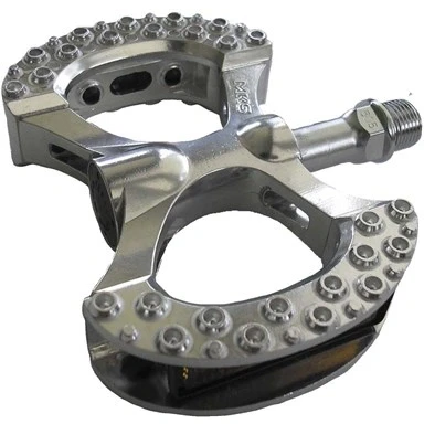 When you need to be sure of your footing when setting off, the MKS Lambda flat pedal will be there for you every time. The Lambda is an extremely unique double-sided platform pedal designed in conjunction with Rivendell Bicycle Works. The Lambda design uses a somewhat traditional alloy pedal body attached to very unconventional alloy step block, and is built around our hand adjusted cup and cone bearing system. The large “C” shaped step blocks feature a octopus sucker like dimple that provides excellent grip without shoe damaging pins. While this pedal is quite large front to back, the unique design isn’t particularly wide allowing for ample clearance while cornering. Due to the large surface area, this pedal is popular for cycling in boots and fat biking. Key features: The ultra wide, long profile pedal features a tough alloy body with a wide grippy platform and unique figure-of-eight design Ideal for commuter use, integrated reflectors are an added safety feature