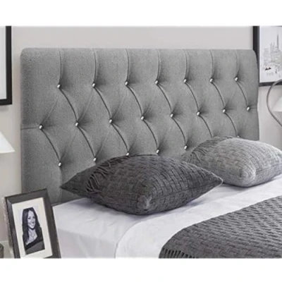 mm08enn Beautiful luxury diamontes Altn headboard in soft plush fabric 20" height (Grey, 5ft king size)