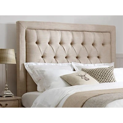 mm08enn BEAUTIFUL LUXURY SPEICAL BEDWORTH HEADBOARD WITH MATCHING BUTTONS IN LINEN FABRIC 30" HEIGHT (5ft king size, light grey)