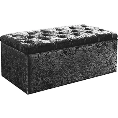 * Chenille Fabric Crystal Diamante Large Ottoman Toy box Storage & Blanket Box If You want Matching buttons, please place order & email us * Ottoman Dimension Length 40" X Width 18" X Height 14" Approx *Choice of Different Colours, Charcoal,Grey,Light,Red,Pink,Raspberry,Pink,Black, cream,Beige * All our product meets all UK fire regulations standards * * Product by Sleep Zone