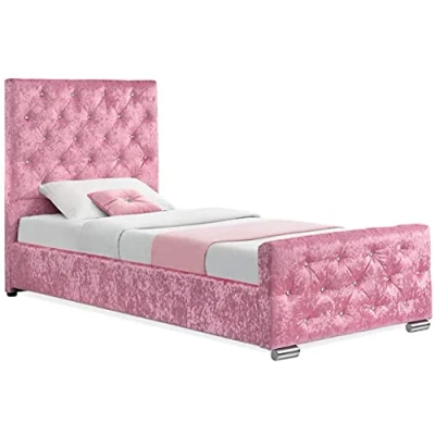 mm08enn Crushed Velvet Fabric 3ft Single Bed Frame (Pink)
