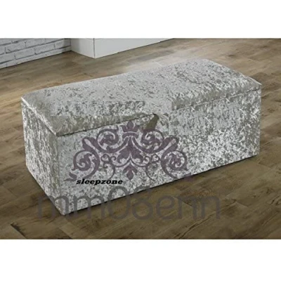 Brand New plain Chenille Ottoman Storage Box with This product is made from strong wood and thick foam padding covered with Crushed velvet fabric all the way around. black material on the inside of the Ottoman available in 4 different dimensions 1. small length 16", height 16" depth 16" 2. special 20" length,20" depth, and 14" height. 3. medium length 30" height 14" depth 13" 4. large length 40" height 14" depth 18" " Crushed Velvet Colour in Stock, Grey, Silver, Cream, Black, Truffle, Mullbery, Champagne, Pink