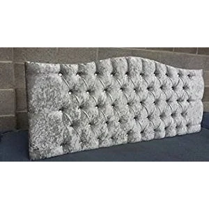 mm08enn Stylish Dewsbury Diamante Headboard Finished in a Luxury Crushed Velvet Fabric (4FT6 DOUBLE, SILVER ICE)