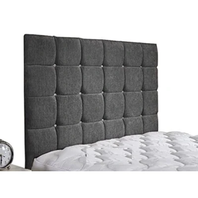 Design and Material: Luxury Cube Headboard crafted with Chenille Fabric featuring a solid build structure and elegant durable finish Height and Style: 30 inches tall Cube Design headboard with fabric matching buttons, crystal diamante buttons available upon request Installation: Headboard includes wooden legs and screws for easy assembly, manufactured in UK Size Options: Available in multiple sizes including 3ft single, 4ft small double, 4ft6 double, 5ft king size, and 6ft super king size Color Selection: Available in Chenille Fabric colors including Grey, Charcoal, Teal, Black, Beige, Mink, and Purple Additional Fabric Options: Available in alternative materials including crushed velvet, faux leather, and linen fabric Fire Safety: Upholstered in 100% FR (Fire Retardant) Chenille Fabric for enhanced safety measures