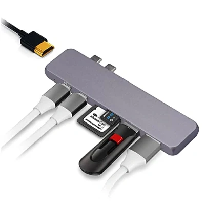 7 IN 1 USB C Multiport HUB in Mac design: Multi-purpose aluminium 2x USB C Data Slot, 1x4K @30Hz HDMI output supporting up to 5Gb/s data transfer, 2x USB 3.0 ports connecting multiple USB devices such as mouse, keyboard, U-Disk Plug and Play, 1x SD Card Reader, 1x Micro SD Card Reader. Powerful Data Transfer:The two USB 3.0 Type-A ports on the hub support a total output of up to 5V 1.5A which can ensure transfer speed quick syncing and file sharing. Equipped with a 4K HDMI output port. You can directly stream 4K UHD (3840x2160 @ 30Hz) resolution video to your TV, monitor or projector. 60W Power Delivery: MMOBIEL USB C HUB supports PD Charging up to 60W. It charges your MacBook Pro and Air at full speed while connecting multiple peripherals or transferring data. However, please notice that whether it is PD charging or high-speed transmission, the hub will generate some heat. Aluminum alloy case has a good heat dissipation effect, so it will give a feeling warm, but it doesn t affect regular use.? ? Customized for Macbook Pro/Air: MMOBIEL Dual Type C port can be securely attached to your Macbook Pro/Air. We apply premium aluminum alloy material just the same as MacBook Pro, which has the function of efficient heat dissipation, shielding interference, wear, and oxidation resistance. Wireless , Lightweight & portable: Size of MMOBIEL USB C HUB is 3 x1.4 x 0.4 . Smart Design no entanglement problem of cable. This USB C Hub can be integrated with your MacBook. it is super light and portable so its easy take it for your business travel and other occasions. High quality product by MMOBIEL: Each part is tested before shipment. Item in Stock