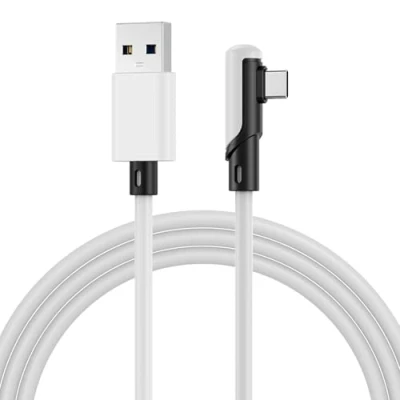 Right-Angle Connector – 90° USB-C plug reduces strain on the headset port, providing a secure fit and minimizing disconnections during gameplay. Compact 9.8 ft (3m) Length – Designed for seated VR use or smaller setups, offering mobility without excessive slack or latency. Wide Device Compatibility – Works with Meta Quest 3S, Quest 3, Quest 2, Quest Pro, plus Pico 4 Ultra/4 and PC/SteamVR systems that use USB-A. Fast Data & Charging Support – Transfers at up to 5 Gbps while delivering reliable charging to keep your headset powered while you play. Durable White PVC Build – Lightweight, flexible, and resistant to tangling, with reinforced strain relief for long-lasting durability.