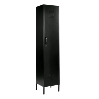 MMT Furniture Designs Ltd Metal Locker Cabinet in Black Orange Yellow Blue White Grey, Lockable Storage Cleaning Cupboard Slim One Door Wardrobe Industrial Style Shoe
