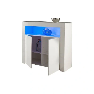 ManoManoModern white gloss buffet sideboard unit. Enhanced with LED lights to give any modern house a contemporary feel. Unit size is 90 x 35 x 83cm (w x d x h)