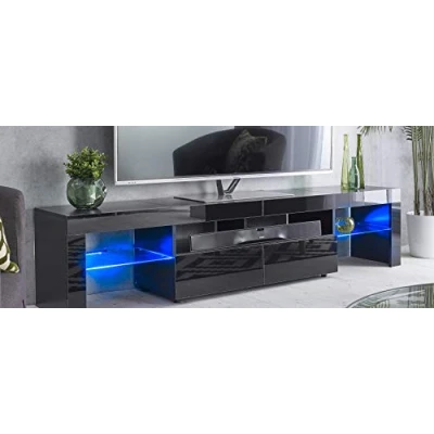 200 cm wide TV Cabinet LED Lights Suits up to 80 inch LED LCD TV's Size 200cm long x 40cm deep x 45cm tall Sound Bar Shelf This product is packaged in two or more boxes. You may receive it on different days.