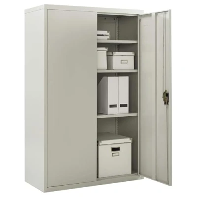 MMT Furniture Steel Storage Cabinet 2 Door Lockable Filing Cupboard for Home, Office Documents, Files, Pantry 3 Shelf Unit Grey