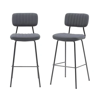 MMT Grey/Tan PU Leather Bar Stools Set of 2 with Steel Frame, Industrial Retro Style, Padded Back Rest, Tall Stool for Breakfast Bar, High Stools, Dimensions 45.5x49.5x107.5cm (Dark Grey)