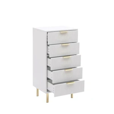 MMT White Chest of Drawers, Gloss, Fluted Storage Drawers with Gold Handles & Legs, 3 or 5 Drawer Options, Elegant Bedroom Furniture for Stylish Organization (5 Drawer)