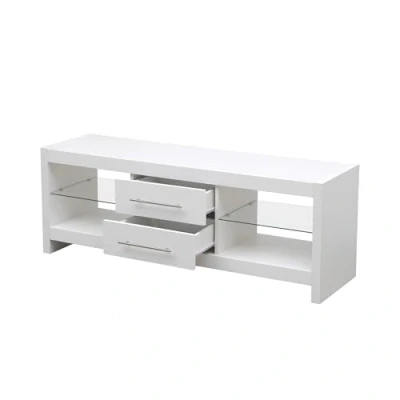 Elegant Design LED TV Unit: This living room furniture piece is a white TV cabinet with a glossy finish, designed to enhance your space. It's a sophisticated tv unit for 65 inch tv setups, offering both style and functionality for modern homes. Illuminated Ambiance: Featuring integrated tv led lights, this tv stand creates a captivating ambiance in your living room. The tv lights enhance your viewing experience, making it an ideal tv stand for 55 inch tv or larger displays. TV Cabinet White Robust Storage: Equipped with storage drawers, this tv stand unit provides ample space for organizing media essentials. A practical tv cabinet for living room setups, it's perfect for maintaining a clutter-free entertainment area. Modern white gloss tv unit. Versatile Shelving: With glass shelves, this tv stand cabinet offers a sleek display area for decorative items. The white tv unit's shelves are ideal for showcasing your favorite collections while complementing your home's decor. Flat Screen TV Stand Adaptable Dimensions: Measuring 140cm, this tv units for living room accommodates up to a 65 inch TV. It serves as a reliable tv stand 65 inch option, ensuring compatibility with various tv sizes and enhancing your living space.