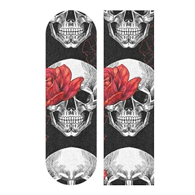 Mnsruu Skull And Red Roses Skateboard Grip Tape Sheet Scooter Deck Sand Paper 9" x 33"