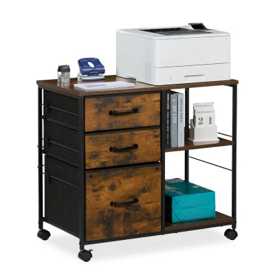 Mobile Filing Cabinet, 3 Drawers, Suspension Files, Industrial Style Shelves, 68x75x40 cm, Office, Brown/Black Relaxdays