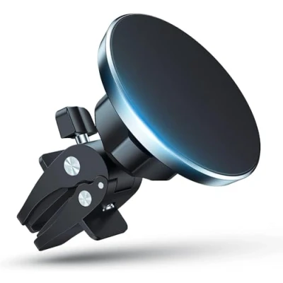 Super-Strong Magnetic Hold: This car phone holder features 16 built-in super-strong magnets for a powerful grip. Its magnetic force is so secure it can stably hold up to 11 smartphones at once! The enclosed magnetic field is completely safe and will not interfere with your phone's signal. Universal Compatibility: Designed for direct use with iPhone 17, 16, 15, 14, 13, 12 series, including Plus, Pro, Pro Max, and Mini models. For other phones, simply use the included metal ring or a compatible Mag-Safe case for instant, secure attachment. One-Tap Mounting & 360° Rotation: Utilising One-Tap functionality, you can attach and remove your iPhone with the Mag-Safe car mount in just one second. The 360-degree rotating ball head allows you to easily adjust your phone to the perfect viewing angle for driving or navigation. Robust Twist-Lock Vent Design: Simply insert the magnetic car phone holder into your air vent and tighten the adjustable screw. The twist-lock mechanism ensures it becomes a solid part of your car! A soft rubber layer protects your vent fins from scratches, while the durable stainless-steel clip won't break. What You Get & Support: Includes: Magnetic Car Phone Holder x 1, Metal Ring x 1, User Manual x 1. Backed by lifetime professional technical support. Please contact us with any questions – we're here to help.