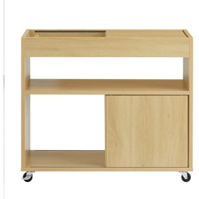 General description The SoBuy Mobile Storage Cabinet is a modern design piece that offers various storage options, providing ample space for your belongings. It features two compartments on the top with sliding lids, ideal for items you want to keep within reach or display. An open storage shelf adds additional space for storage and display, while the bottom cabinet has sliding doors to accommodate different storage needs. Made from high-quality particle board with a natural melamine veneer, this cabinet is both functional and stylish, fitting seamlessly into any decor. Technical specifications Material: Particle board Dimensions: W70 x D30 x H60 cm Weight: 15.3 kg Load capacity: 35 kg Installation Item comes in a flat pack and requires self-assembly Detailed instructions are supplied Usage Can be used as a side table, end table, or file cabinet in a study room or office Equipped with 4 wheels (2 with brakes) for easy mobility Other information The decorative elements are not included