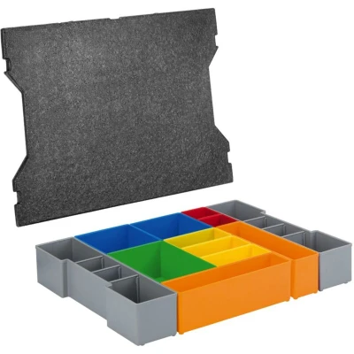 General description The L-Boxx 102 inset box set includes 12 units designed for flexible storage within the Bosch Mobility system. It features small colored boxes of various sizes, specially arranged to store different objects such as accessories and consumables, ensuring an ideal view and perfect organization. Technical specifications Number of pieces: 12 Compatibility: L-Boxx 102