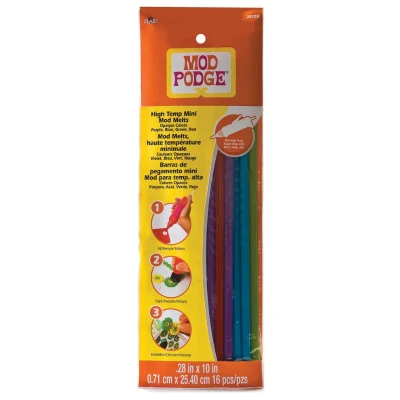 Create custom embellishments with these vibrant Mod Melts, perfect for all your crafting projects. Features:. Available in four opaque colours: Purple, Green, Blue, and Red. Additional options in sea glass clear and milk glass white. Each package contains sixteen mini melts, each measuring 10" long. MPN: 25128