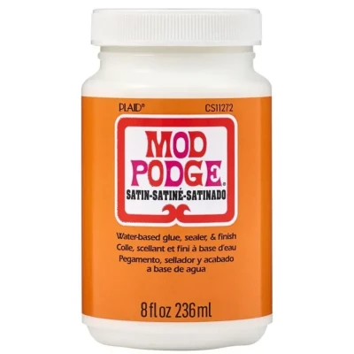 Mod Podge Satin is a quick-drying, all-in-one glue, sealer, and finish that dries clear with a soft satin sheen. The 8 oz bottle is ideal for small to medium craft projects, offering a subtle finish that enhances colours without the shine of gloss or the flat look of matte.. This water-based, non-toxic formula is easy to use, safe for all ages, and cleans up with soap and water while wet. It works well on wood, paper, fabric, canvas, and more, making it a versatile choice for home décor and creative projects.. Features & Benefits. Quick-Drying – Apply multiple coats with reduced waiting time.. Satin Finish – Clear protective coat with a subtle sheen.. Multi-Surface Use – Works on wood, fabric, paper, canvas, and more.. Safe & Easy – Water-based, AP-certified non-toxic formula.. Convenient Size – 8 oz bottle perfect for everyday crafting.. Inspiration. Use Mod Podge Satin to finish decoupage, mixed media, or home décor projects where a smooth protective coat with a soft sheen is desired.. Product Details. Size: 8 oz. MPN: CS11272