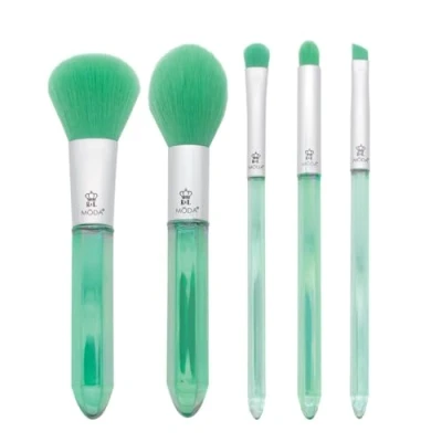 This radiant and dazzling 5 piece, full face brush kit is perfect for applying, blending, and shading. Professional Quality Synthetic Filaments Excellent for Wet & Dry Product Waterproof Textured Handles 100% Vegan