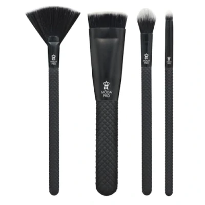 Vegan and cruelty-free. This set includes - highlight, sculpt, glow, and detail. Excellent for wet and dry products. Sturdy aluminum ferrule and textured, waterproof handles.