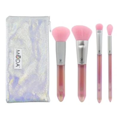 MODA Royal & Langnickel Full Size Mythical Crystal 5pc Makeup Brush Set with Pouch, Includes Powder, Angle Brush, MD Shader, and Crease Brushes, Rose Quartz,BMD MRQSET5