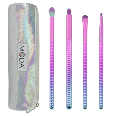 Moda Royal & Langnickel Full Size Prismatic Smoky Eye 5pc Makeup Brush Set with Pouch, Includes, Crease, Brush, Smudger, and Angled Eyeliner Brushes, Pink Teal Ombre