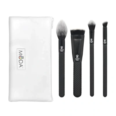 Complete 5 piece full size makeup brush set - this set has all the essentials to create your perfect eye look. Set includes the following brushes - radiance, sculpt, glow and precision angle Premium quality - featuring our durable waterproof silk-touch handles that allows for a maximum grip for an effortless application process Vegan and Cruelty free - featuring, incredibly soft, high quality non-irritating bushy proprietary Synthetic fiber blend that picks up powders, creams, and liquids efficiently leaving minimal waste Pouch included - Great for storing or for travel to complete your on-the-go makeup look Warranty - we continually strive to provide Premium quality along with exceptional trendy looks that is why all our Moda brushes come with a 2 year Limited Warranty