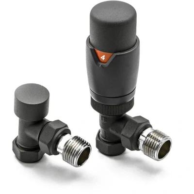 Modal trv Angled Radiator Valve and Lockshield Anthracite Reina