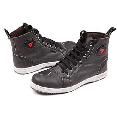 Modeka Lane Shoes black Details: Sneaker high quality cowhide leather in vintage look Equipment: Switching amplification ankle protection comfortable textile lining (100% polyester) additional coloured shoelaces included in delivery Shaft height: approx. 15 cm Sizes: 37 - 47 Color: black