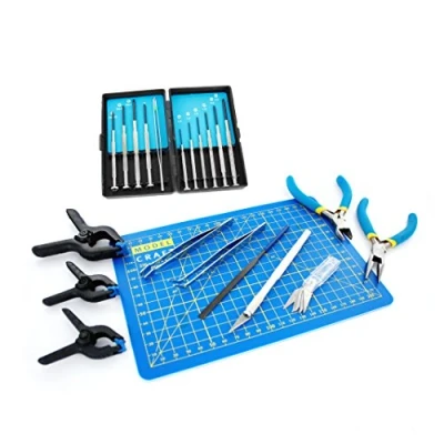 Unmissable PSD1011 & PTK1015 Swivel Top Screwdriver Set with a 15pc tool set 9 Precision screwdrivers,Phillips: No's. 00, 0, 1, Slotted Blades: 1.0, 1.2, 1.4, 1.8, 2.4, 3.0mm Also sold seperatley PSD1011 & PTK1015 Side cutter,snipe nose plier,modellers knife with no.11 blade, 5x no.11 spare blades, flat hobby file Flat end tweezers, 3 grip clamps ( 2 x 2"/50mm & 1 x 3"/75mm)